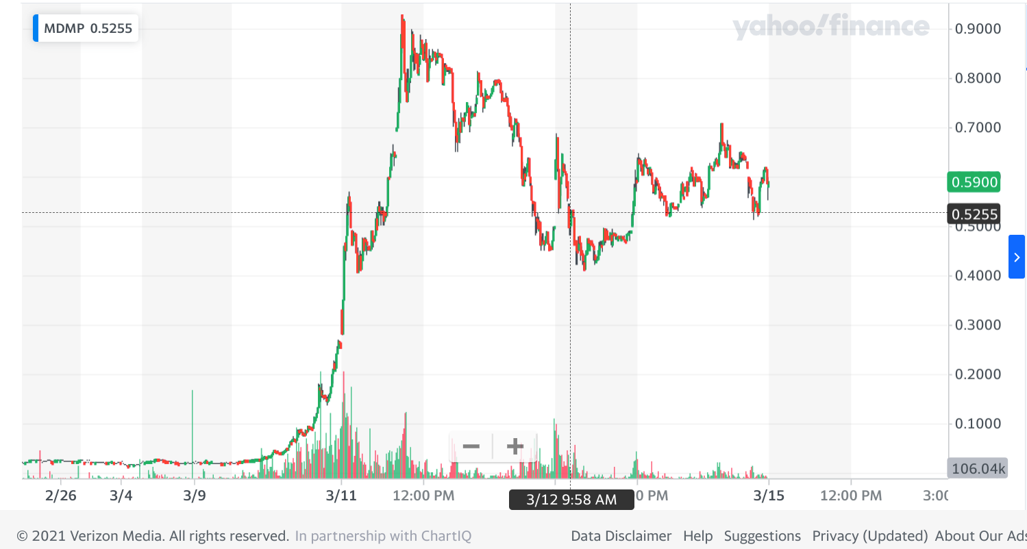 MDMP: Truly learned a lot from this trade that helped me be better prepared mentally for the last trade of the week. On 3/11 I started watching this OTC start to take off within the first hour of the market. I missed a decent entry at .4200 because I got too nervous and thought that it was starting to go down which it did but it was just a bounce. So I started to chase it (super bad idea, will never chase again, if I missed the dip then I missed the dip no mo FOMO) at .65 and kept missing it. I finally got it filled at .899 which was at the top for the day. Not 2 minutes later, it started to fall hard. I decided to hold overnight despite being taught that it’s not a good idea right now due to due all the OTC stops lately. The next day, the momentum did not pick so I decided to get out as quick as I could for a loss of -41.58%. Not that it matters but my loss would have been less if I had got out later that day. Verified trade here: https://profit.ly/1N4Aon